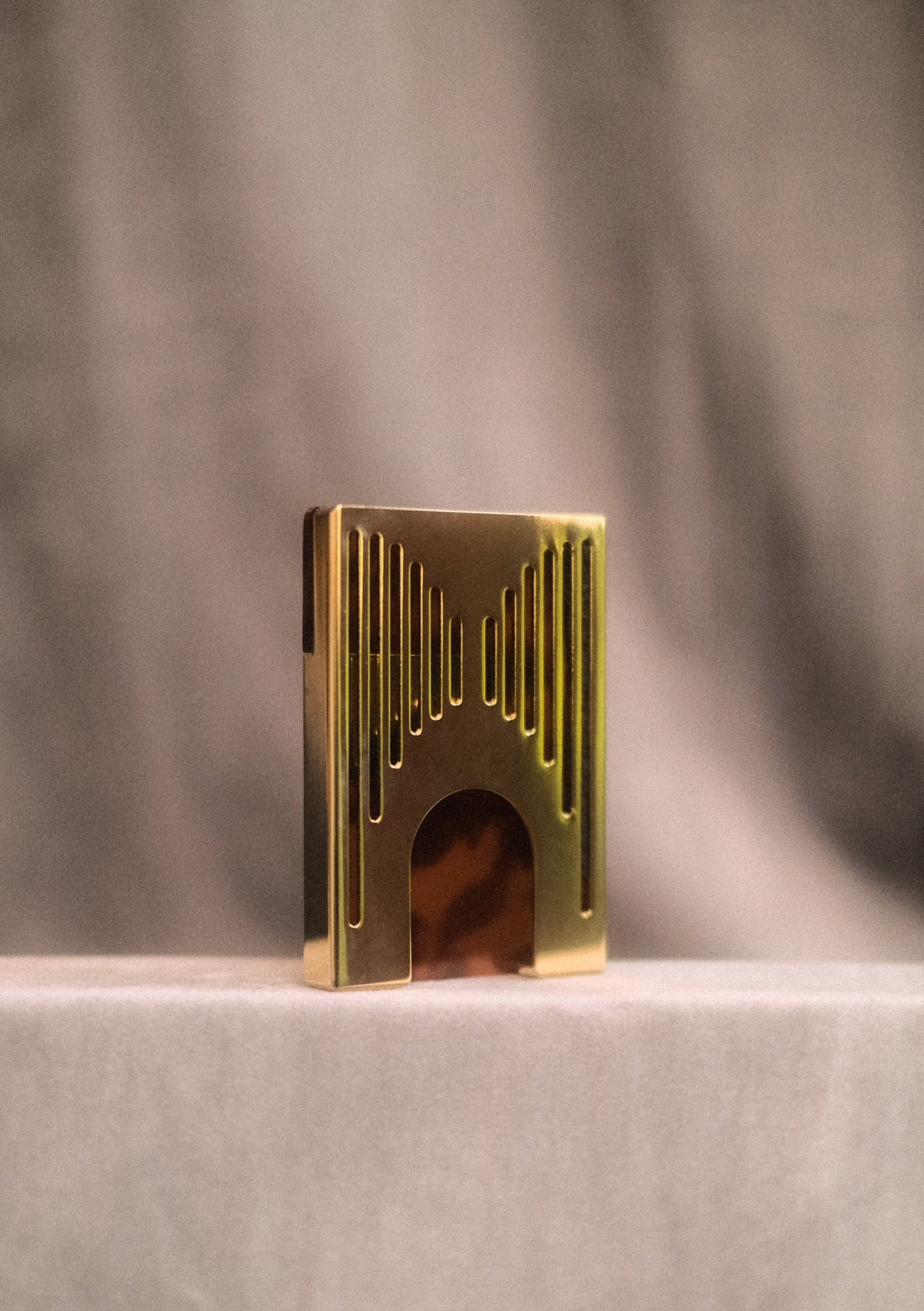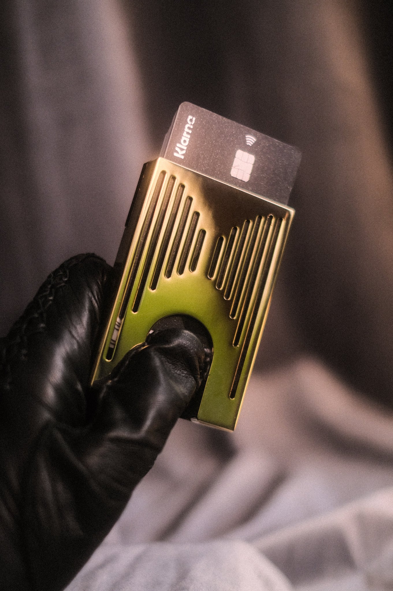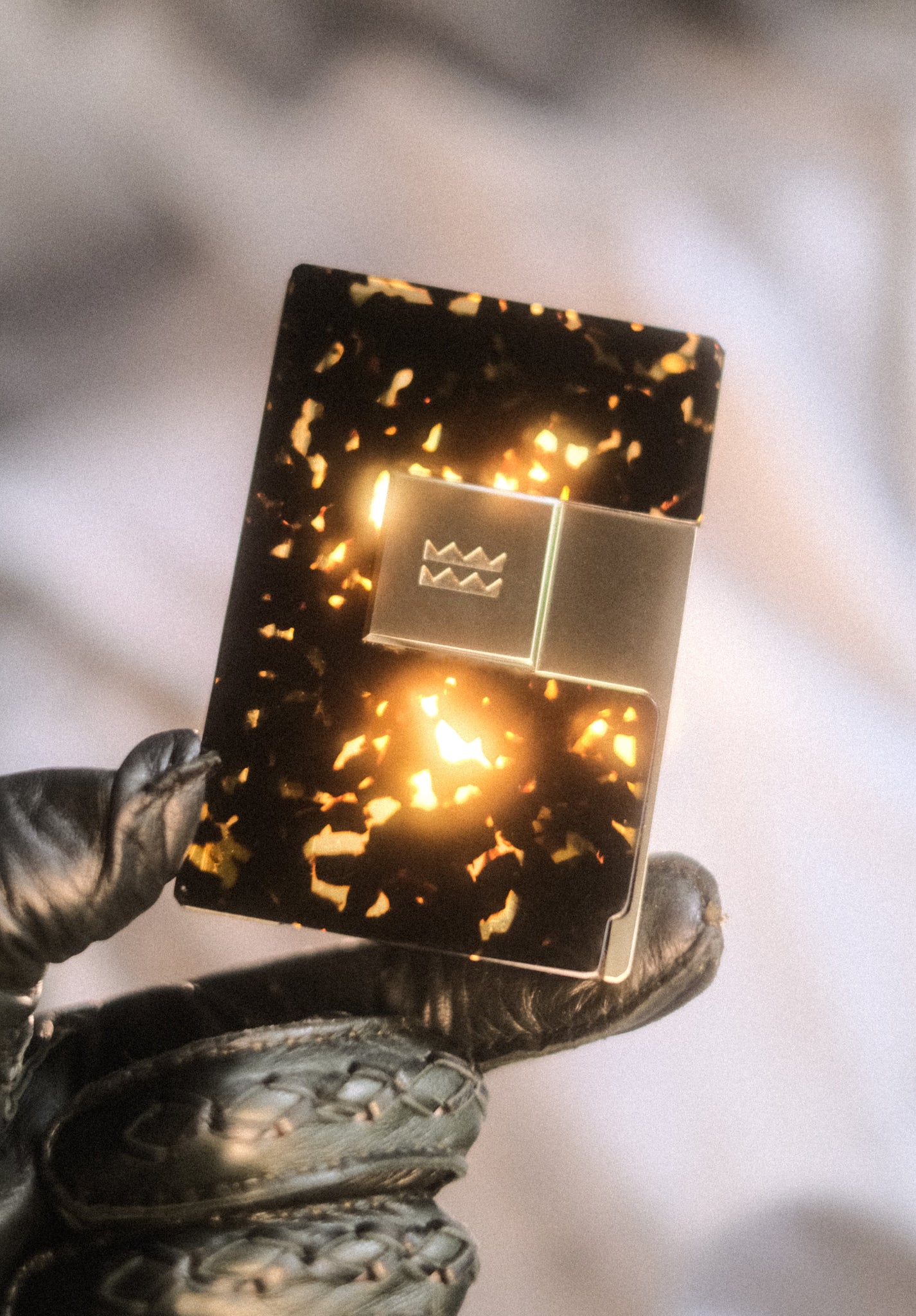 The 1900 Card Case is a uniquely elegant way to carry your cards in high style. It is milled from a single piece of 6061 aluminum and finished with a dual layer chrome and PVD gold coating. It comes with a removeable Italian acetate cover and our optional hybrid-glass protection layer. Cards are held securely in place by a replaceable felt strip running along the inner wall of the aluminum frame. Edges and corners are smoothly beveled and finished to ensure a comfortable fit in both your hand and your pocket.